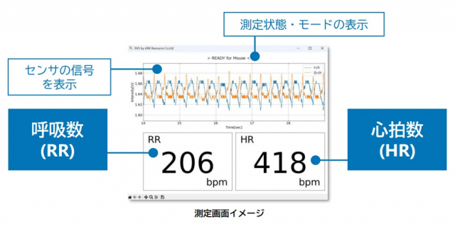 ■ 注射麻酔下でのマウス・ラットを対象とした非接触での呼吸数、心拍数が測定できます。
